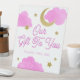 Guide your guests with this charming pink “Our Gift to You” favour sign from the Over the Moon baby shower collection. Designed with glittery gold stars, a crescent moon, and soft watercolor clouds, this sweet sign adds a magical finishing touch to your favour table. Perfect for girl baby showers or celestial-themed events, it helps create a cohesive and thoughtful setup. Simply display near your thank-you gifts to complete the look!