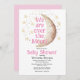 Pink Girl Baby Shower Invitation with cute and common phrase 'we are over the moon'. Invite your dear guest with this beautiful and cute invite and show your big excitement with the new sweet arrival. Classic pink in phrase and occasion, Easily change this details with your by click on PERSONALIZE THIS ITEM.