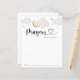 Baby shower activity card features watercolor grey clouds and gold stars. Prayers card prompts guests to share prayers for the parents to be as they prepare for baby.