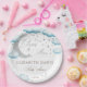 Over the Moon Silver Blue Boy Baby Shower Paper Plate