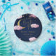 These "Over the Moon" pink baby shower paper plates feature a dreamy celestial design. The plates showcase a soft pink background with a glowing gold crescent moon at the centre, surrounded by sparkling gold stars. Fluffy pink clouds add a whimsical touch, enhancing the dreamy, night-sky theme. The gold accents make the design elegant, while the pastel pink tones bring a soft and playful feel, making these plates the perfect complement to a "Over the Moon" themed baby shower celebration.
