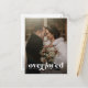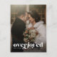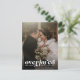 Overjoyed! For your most joyous holiday yet! This one-photo holiday postcard is perfect for newlyweds. It features bold white type with emphasis on the word "joy" in "overjoyed" and a vertical photo. Great for sharing a wedding photo or a photo of your first holiday memories together as a married couple. The postcard back has room for a custom message to announce a change the date or an elopement. This design also works well as a holiday birth announcement or save the date.