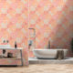 An overlapping design with a pastel peach colour and traditional Chinese fans.