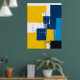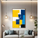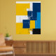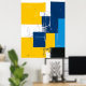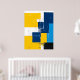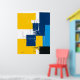 Overlapping geometric shapes create layers of depth and movement, balancing vibrant and subtle colours. The fusion of precision and fluidity transforms the space with a modern aesthetic, where each element connects in perfect visual harmony.