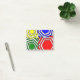 These notes have a Bauhaus design of overlapping concentric hexagons in red, yellow, blue, and green.