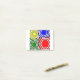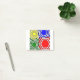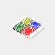 These Post-It notes have a Bauhaus design of overlapping concentric hexagons in red, yellow, blue, and green.