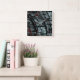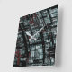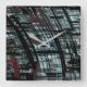 Overlapping narrow, linear cutouts intersecting on square wall clock
