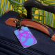 overlapping purple ring in blue background luggage tag