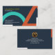 A simple clean professional card. All the shapes required for the study of math are here. You have circumference of from a Cyan circle i.e. C=2πr with a white radius, trigonometry from an orange equilateral triangle where the white tab acts as a right angle 'x-y' axis. Your name, in light brown, and job title are at the top of the card. All contact details rest on the radius of the Cyan circle southwards. Overleaf, in a similar dark blue background, you have two tabs. One orange at the top right corner whilst the other, white, is at the card's base. All the card's info sit at the midsection. At the top, there is a faux gold icon logo of the symbol 'pi". If you decide to upload a photo, the measurements are 1,000 x 1,000 pix. The business name comes next, followed by your business details and finally your slogan tagline to personalise your design. This design has many options in order for you to customise your card further. This is a great creative design, made for all who's life live by the love of numbers for precision.
