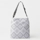 Ladies large cross over tote bag with modern grey patterned design, white background can be changed to any colour, and text can also be added to personalise.