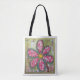 One large oversized flower adorns this tote bag with whimsical pink petals and gold centre, a mixed media work of art. A carry-all that can be enjoyed with each use any day of the week.