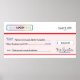 Customise every detail from your business logo, the "Pay to the Order of" line and a specific memo to reflect the reason for your donation. The professional layout mirrors a standard bank check for authenticity, providing a formal yet exciting prop for winners and representatives to hold during commemorative snapshots. High resolution print on poster paper, and available in a range of colours to complement your brand.