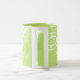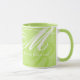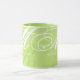 A stylish sharp-green mug-of-coffee with your own special name and initials monogrammed in elegant script font style... unique personalisation... sharp green is a trendy nice colour, a medium light shade of yellow-green.