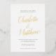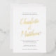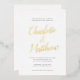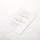 This chic and simple wedding invitation design features modern calligraphy script in gold foil, a classic white background, and elegant typography. This elegant yet simple design is a fabulous choice for any style of wedding. You can customise this design even further by adding a photo or additional text to the backer. Foil is available in gold, silver, or rose gold and absolutely shines! Select real foil wedding invitations to add that wow factor!!