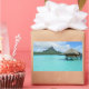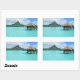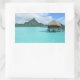 Sticker of a luxury overwater bungalow resort in the clear blue lagoon of the pacific island of Bora Bora, near Tahiti in French Polynesia.