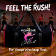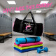 This black duffle bag features a vibrant graphic of a silhouetted figure (possibly a dancer or gymnast) leaping with arms outstretched, radiating energy. Above the figure, "I'M OVERWHELMED" is in large white letters, with "With Excitement" below, conveying a humourous and positive spin on feeling overwhelmed. This design is perfect for highly enthusiastic individuals. Edit colour of the bag caps and body in the Design tool to your favored colours.