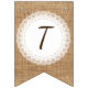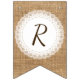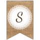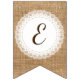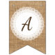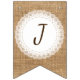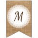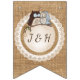 Super cute casual and rustic wedding design features a burlap texture look background on each of the flags. Some of the flags feature a white circle lace doily with two cute owls sitting on a branch at the top of the a beige inner circle. The owls are brown with light blue trim and light blue with beige trim. Inside these circles with the owls is customisable text to add your own wording and some can be customised with the couples first name initials. The rest of the flags have a plain white circle doily with text inside that spells out Just Married. Matching Owl Always Love You Casual Wedding Invitations and RSVP cards also available.