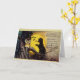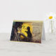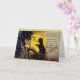 A Halloween cat featuring a vintage owl and a black cat exclaiming. There are beautiful gold highlights above the cat. The warning is to warn people about the ghosts on Halloween. It is a spooky card.