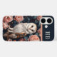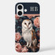 Beautiful phone case featuring a detailed owl illustration surrounded by blooming roses, accompanied by a customisable monogram, perfect for elegant style and nature enthusiasts. ©doodles_designs