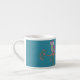 Owl sat in a pink blossom tree at night, cartoon art work on espresso mug.