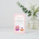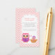 Encourage guests to bring a children's book for your little one with this cute request card insert which you can add to your invites. It has a cute pair of owls. The mother owl is reading a bedtime stories book to her baby owl which is wearing a night cap and which is snuggling nicely in the nest. A classic chevron zigzag pattern background and sweet colour choices of pink and purple makes it perfect for mums who are having baby girls.
