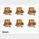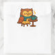 A glossy, vibrant round sticker featuring a cozy cartoon owl enjoying a steaming cup of coffee at a café table, set against a clean white background. With kawaii styling, warm details, and crisp contrast, this design is perfect for planners, laptops, water bottles, and anyone who loves cute animals and coffee culture.