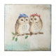 Owl couple with colourful scarfs on a tree branch. tile