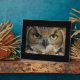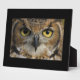 Photo plaque with a acro photo of an owls eyes.