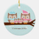 Customisable Christmas ornaments featuring an adorable family of owls perched on a tree branch in soft pastel colours.