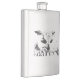 The product is a good size and came exactly as it was pictured. The lid is not attached to the flask, which could be dangerous on drunken nights... The print came out surprisingly well and looks very sharp. Would definitely recommend.