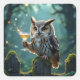 Owl Holding a Cocktail In a Mystical Forest Square Sticker