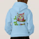 A pretty owl of bright coral with pink and white polka dots and a blue flower sits on a tree branch and multi-colours text reads "I'm a Hoot!" on hoot owl T-shirts, bodysuits, mugs, cards, stickers, bags, stickers, keychains, pillows, journals, and other owl apparel and gift items.