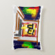 The cushion is small to medium sized. It can be washed. It is well constructed. The material used is pleasant and feels decent quality. It has a very slight plush feel which is good. It is well labelled and its care clearly stated. Theres nothing not to like about it. All in all a good item. The deduction of one star overall is due to long delays in delivery to the UK. It's not clear if this was due to Zazzle or somewhere else in the chain as I did not receive status updates of dispatch or progress. I cannot comment anymore on that other than to say that was our experience but it may not be the same for you. The printing was surprisingly close to what we were expecting. Its an art piece and on material so its hard to assess the precision of printing but it seems close to the original. The soft lines are reproductions of the original. The colour is a fair reflection of the painting. This was printed in the US and it looks like US quality. No issues.