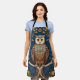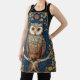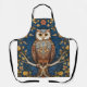 Owl on a branch blue autumn background art nouveau apron