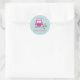 Personalised sticker featuring a little pink cartoon owl sitting on a branch with green leaves and hot pink flowers. Fun design for kids. Customisable name. Stickers special for gifts and favours and any occasion.