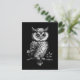 A black and white picture of a beautiful owl sitting on a branch, between flowers and leaves.