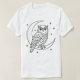 Owl on Crescent Moon with Stars Line Art T-Shirt