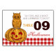 This owl perched on top of a smiling Halloween pumpkin has a rustic yet elegant design and has the words "An Owl and a Hoot and a Pumpkin to Boot". The background has a neat Gingham pattern which gives these table cards a very country barn style feel.