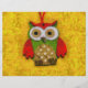 This digital painting features an owl on a yellow background.
