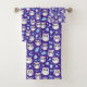 Owl Pattern Bath Towel Set with purple background.