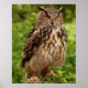 A close up photograph of a beautiful owl sitting on a tree trunk showing in detail its eyes and beak and the attractive colours of its feathers great photo for the owl lovers
