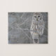 Game puzzle shown with a photo print of beautiful wild owl. Customise this item or buy as is. Stock Image