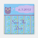 Colourful stripes and stars in blues and yellows with a cute owl and speech bubble announcing a special birthday message. Fun for any age.