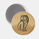 Owl icon on beige grunge background. Symbol of wisdom and wealth.