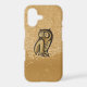 Owl icon on beige grunge background. Symbol of wisdom and wealth.