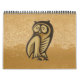 Owl icon on beige grunge background. Symbol of wisdom and wealth.