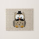 This cute little owl is so adorable with his black dressy hat and black handlebar moustache. Great gift for the moustache man, or little manly boy, or just anyone who appreciates cute owls and animal cartoons with funny faces. Sandy brown background and brown owl with orange beak. All Designs Copyright © 2012 www.CuteComfy.com