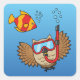 Owl with Snorkel Mask and Tropical Fish Square Sticker