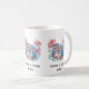 A mug with an image of a pair of owls in love sitting together on a tree branch.