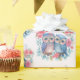 Wrapping paper with an image of a pair of owls in love sitting together on a tree branch.